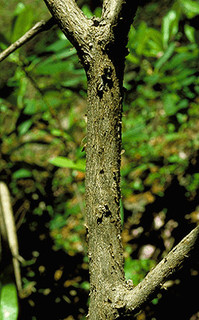 Bark: Bark is gray and smooth or slightly furrowed and scaly.